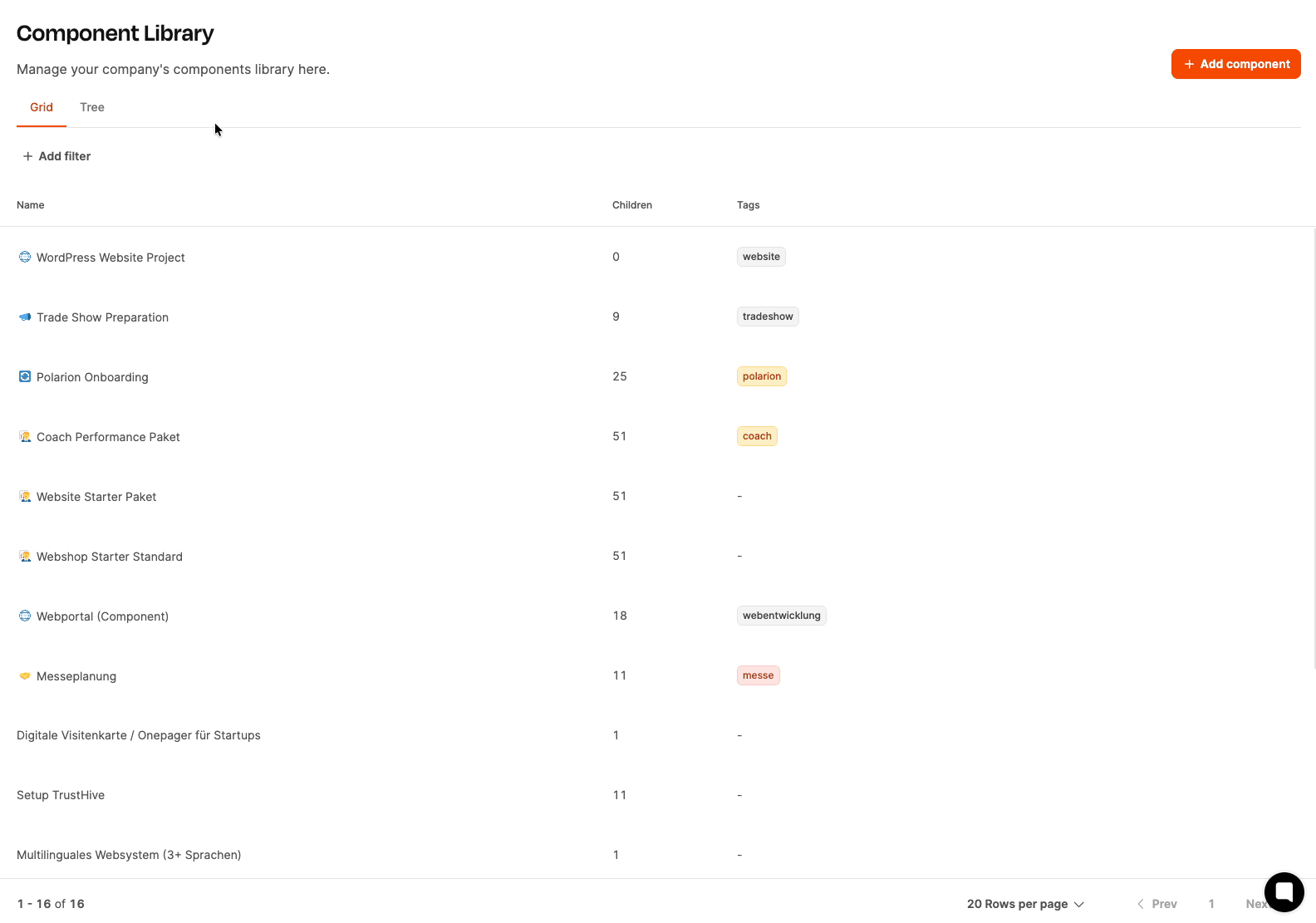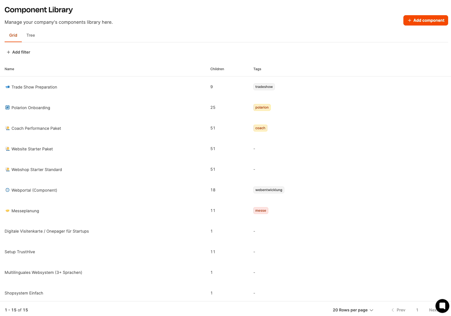 Navigieren Sie im linken Menü zu Ihr Unternehmen → Komponentenbibliothek.