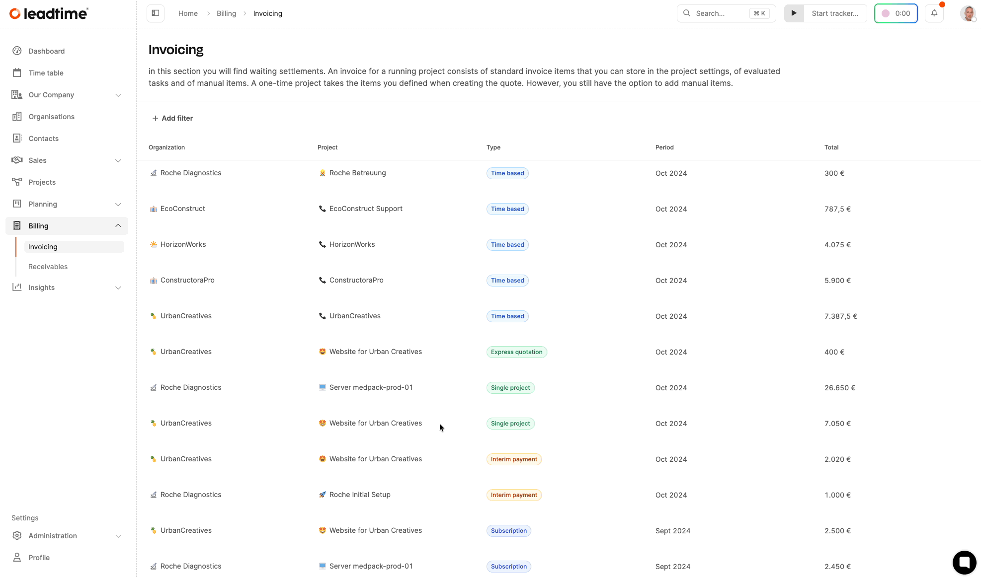 Ab diesem Moment erzeugt Leadtime automatisch wartende Rechnungspositionen. Grundlage ist der aktuelle Stand der freigegebenen Masterversion.