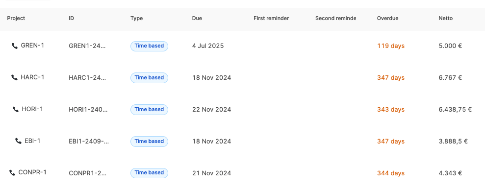 Tabellenansicht im Reiter „Überfällig“
