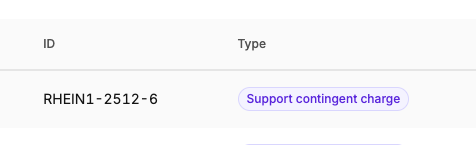 Jede Kontingent-Periode mit verbrauchten Stunden erscheint als Support-Kontingent-Position auf der Rechnung — erkennbar am lila Badge. Die Position nutzt den Kontingent-Preis für diese Periode; verbrauchte Task-Stunden werden nicht separat abgerechnet.