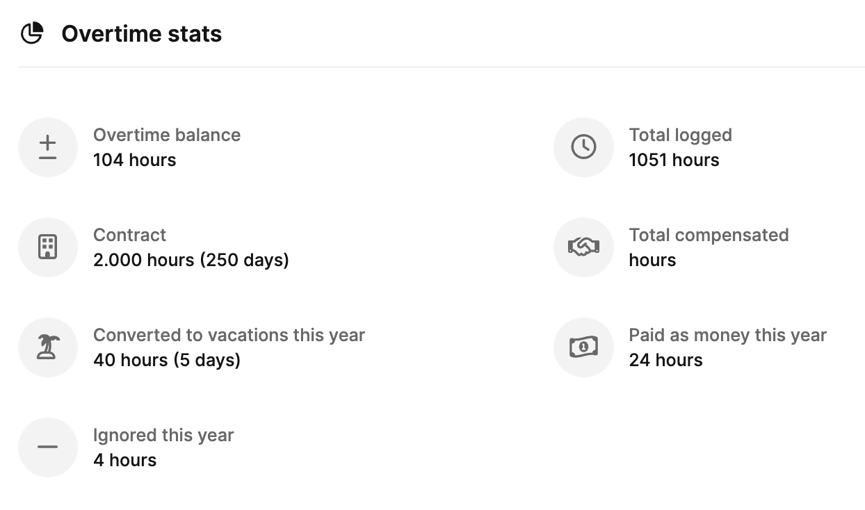 Überstundensaldo: Aktueller Stand Ihrer noch verfügbaren Überstunden.