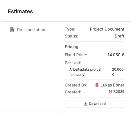 Titel (z. B. Preisindikation oder Projektangebot)