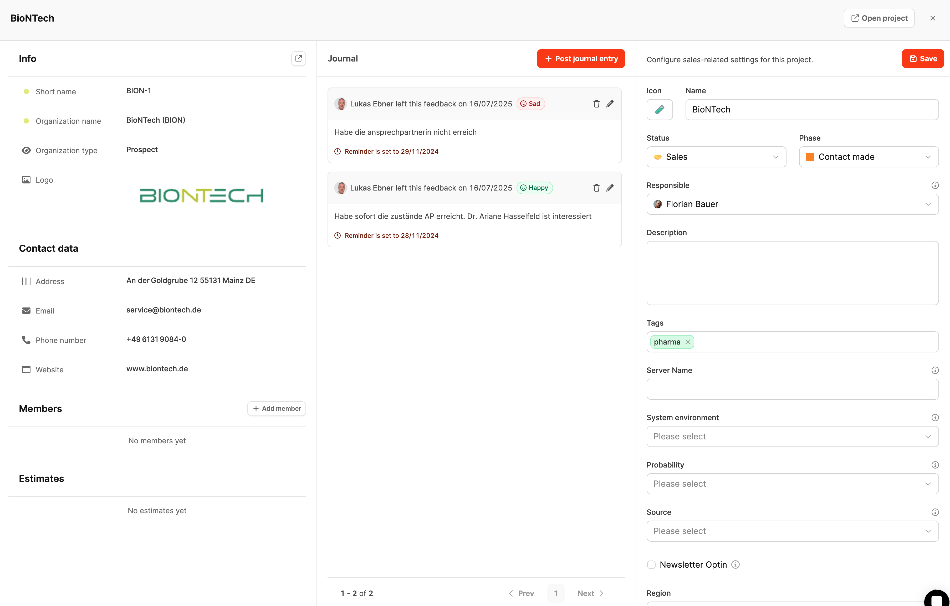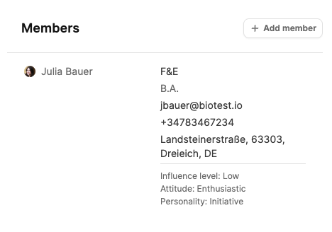 Im Abschnitt Members sind alle zugeordneten Ansprechpartner des Unternehmens aufgelistet.