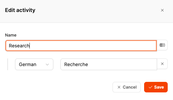 Jede Aktivität kann in mehreren Sprachen gepflegt werden.