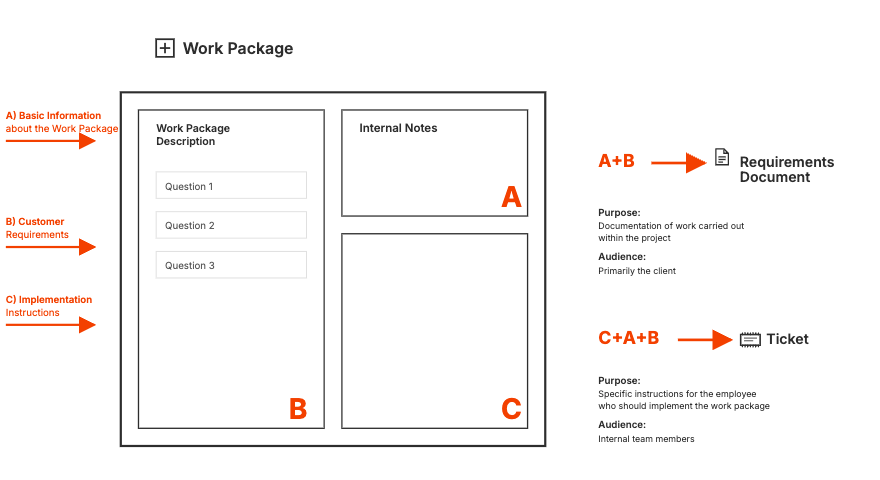 After the specification is approved, the work packages get turned into tickets. That’s where internal notes show up so people working on it have the context and get clear instructions for what to do.