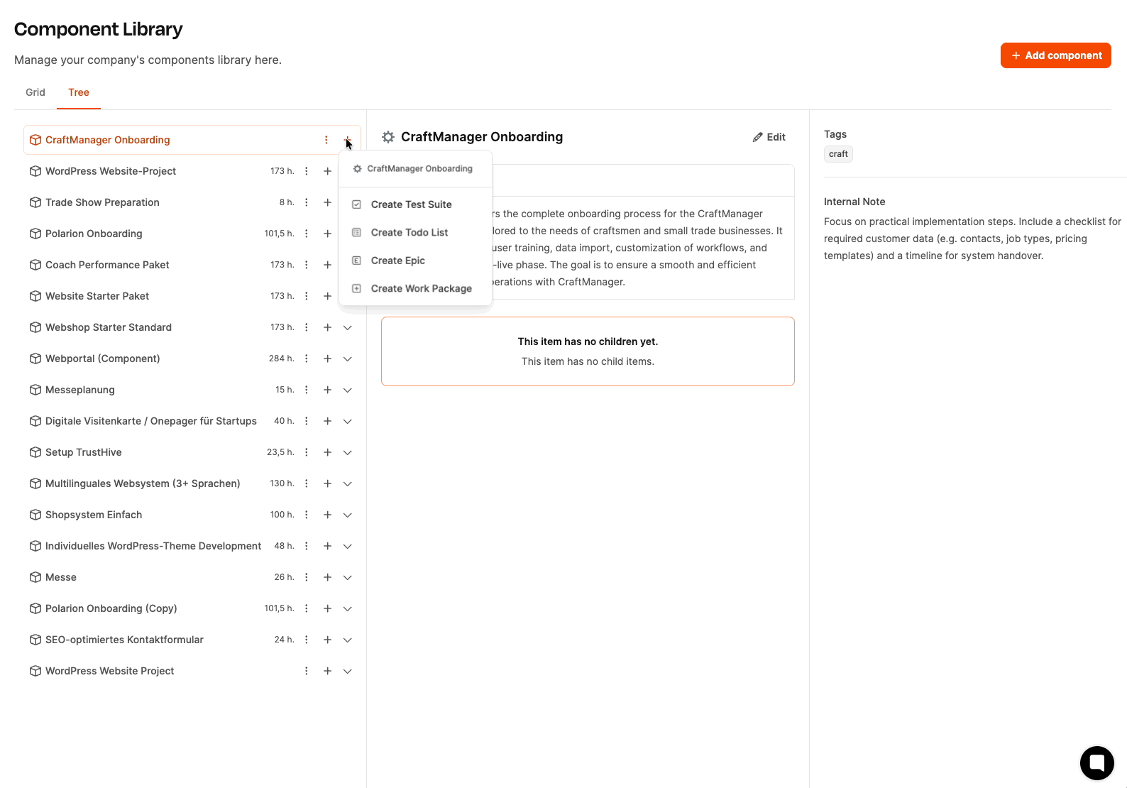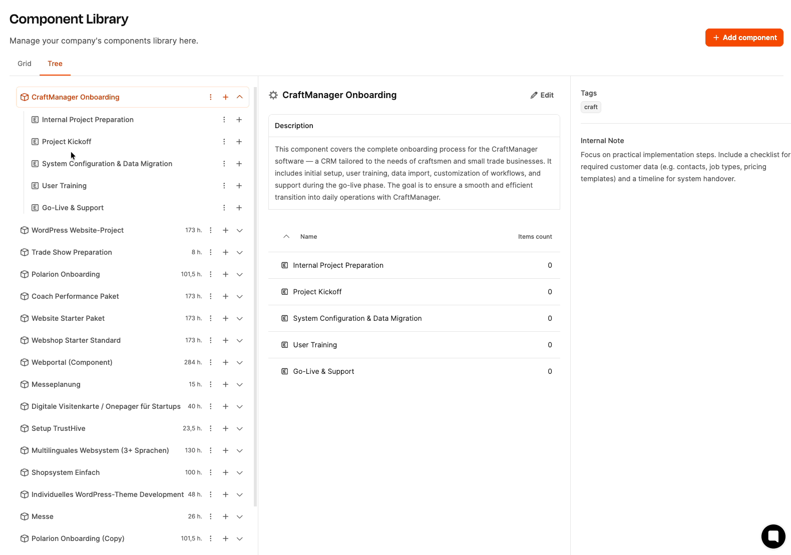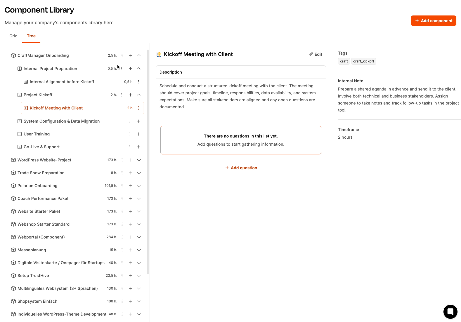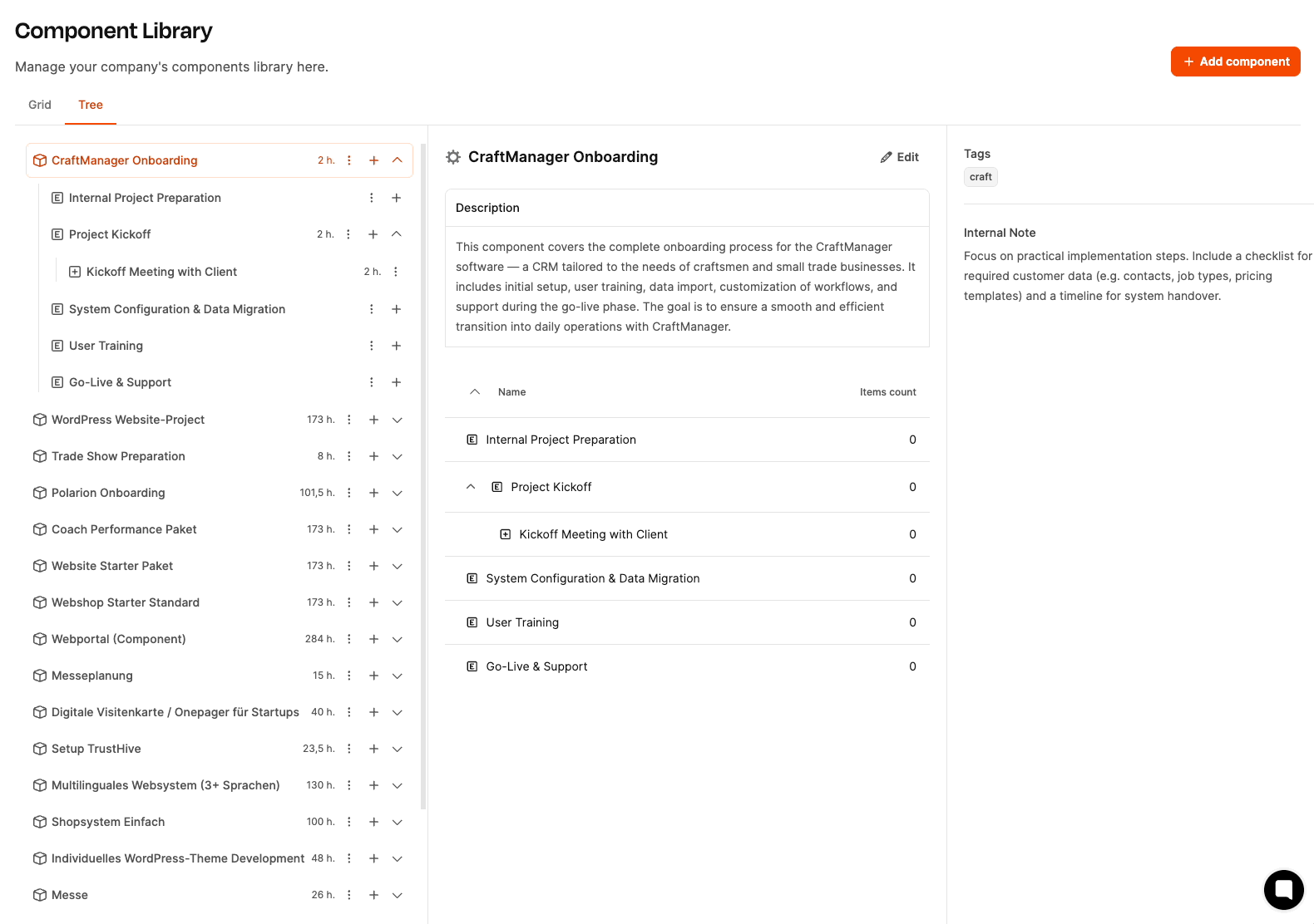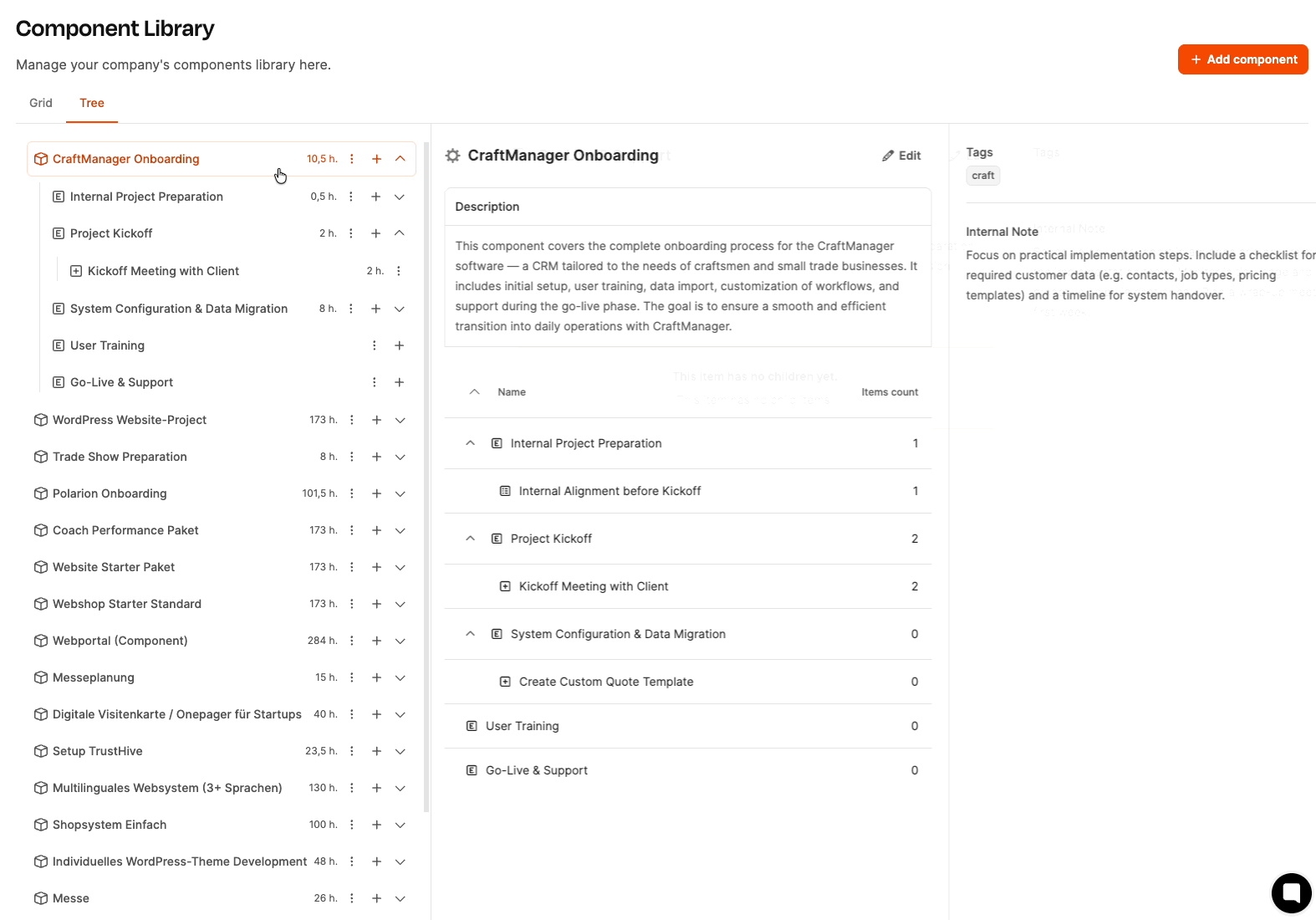At the end of the workshop, there should be an initial draft of the project component, which can be used as a template for all future CRM onboardings in HandwerkerPro's planning system.