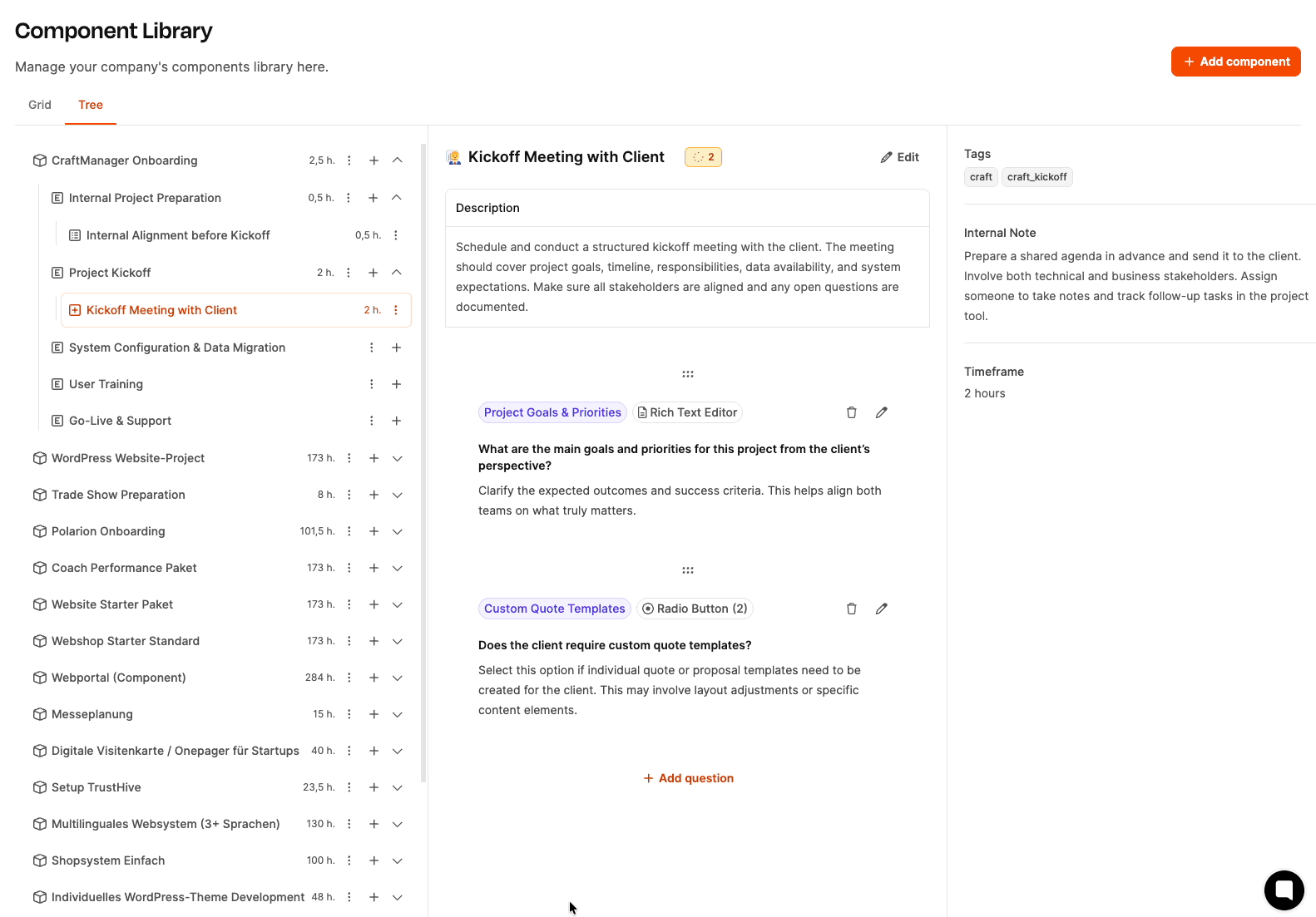 In this workshop, the HandwerkerPro team created a comprehensive, flexible, and smart project component for CRM onboarding. The component: