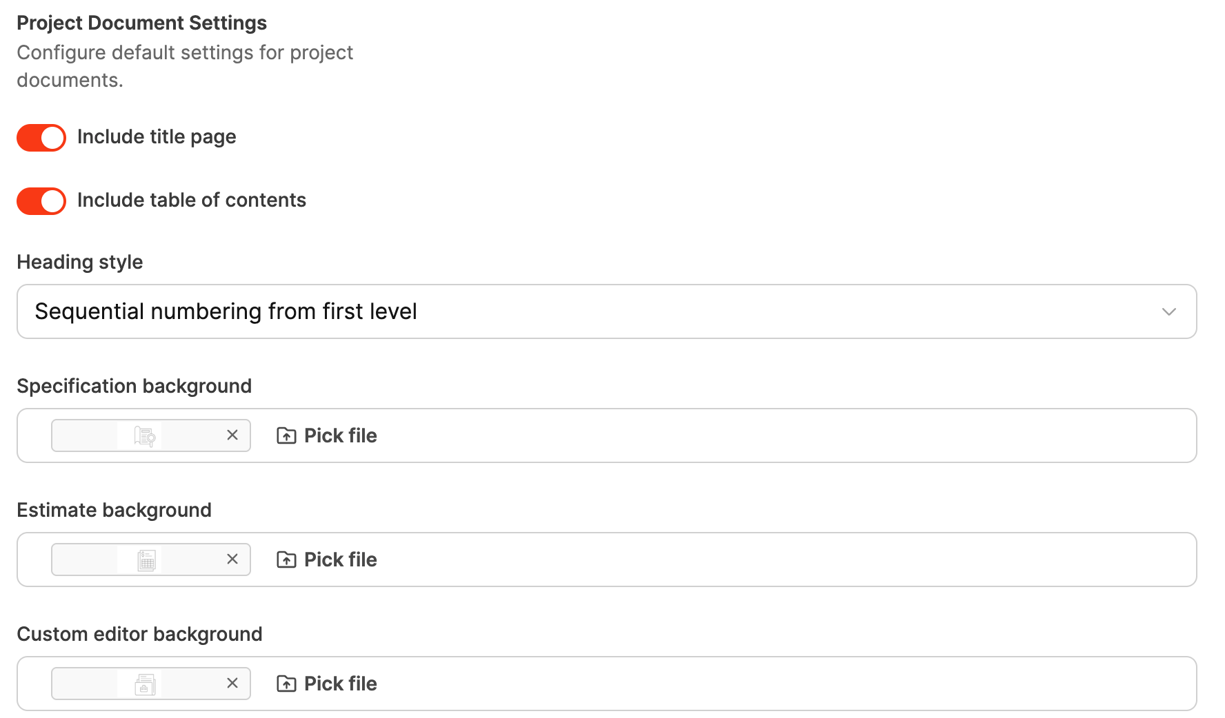 These settings apply to all documents related to projects (for example, quotes or specifications):