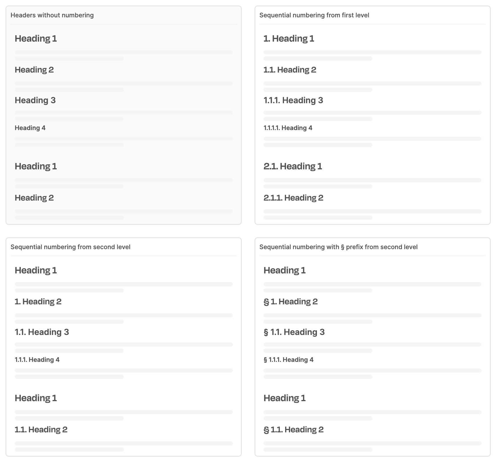 This feature keeps your outline consistent – for example in contract documents, especially when dynamic sections show up or disappear depending on form parameters. You pick it from a dropdown.