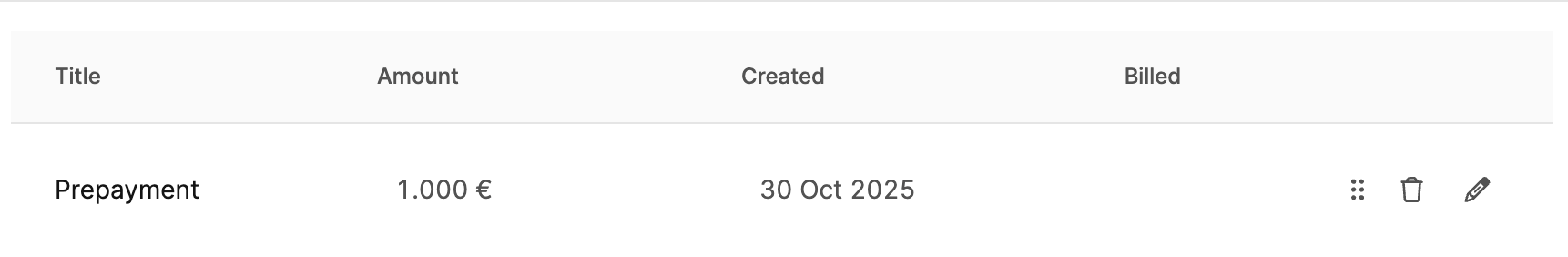 Entered amounts are automatically taken into account in the final invoice and deducted there from the total invoice amount.