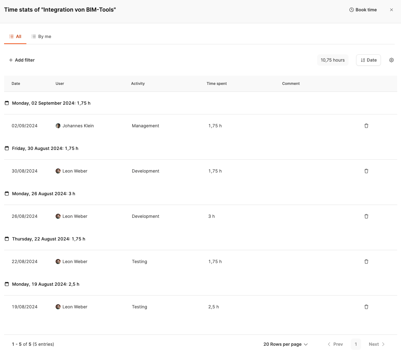 If you click on the time frame, the Time Tracking Statistics will open and break down all the time bookings in detail: