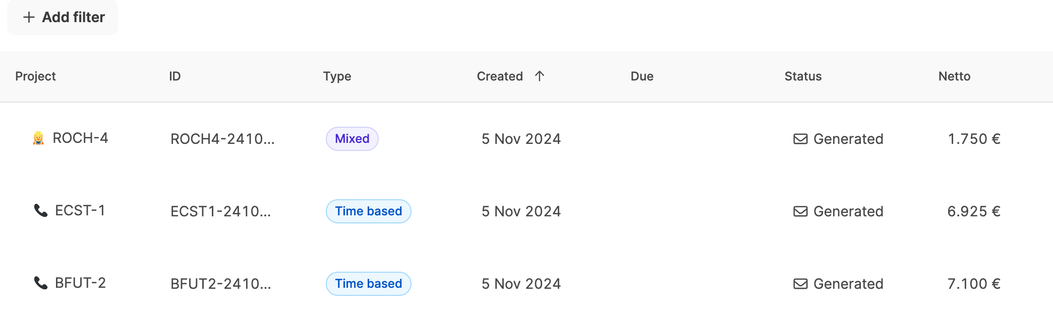 In the "New" tab you'll find all already created but not yet sent invoices.