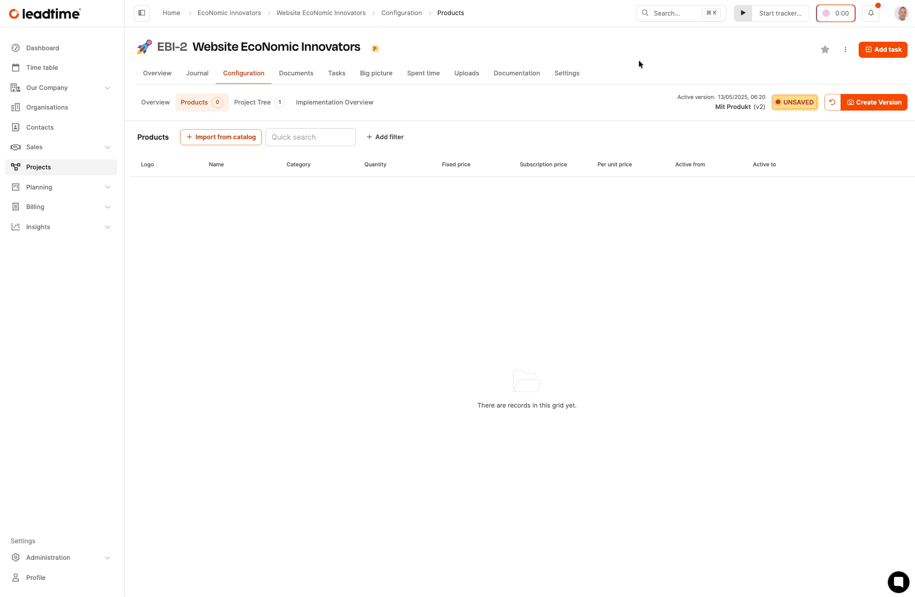 The Leadtime product catalog will open. There you choose the product you want and add it to the project. Products can be one-time or subscription-based.
