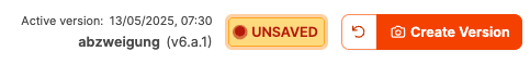 Click on the Create version button to open the dialog for entering a title. A description is automatically generated and shows the differences to the last version. After saving, the note disappears and the version shows up in the version history.