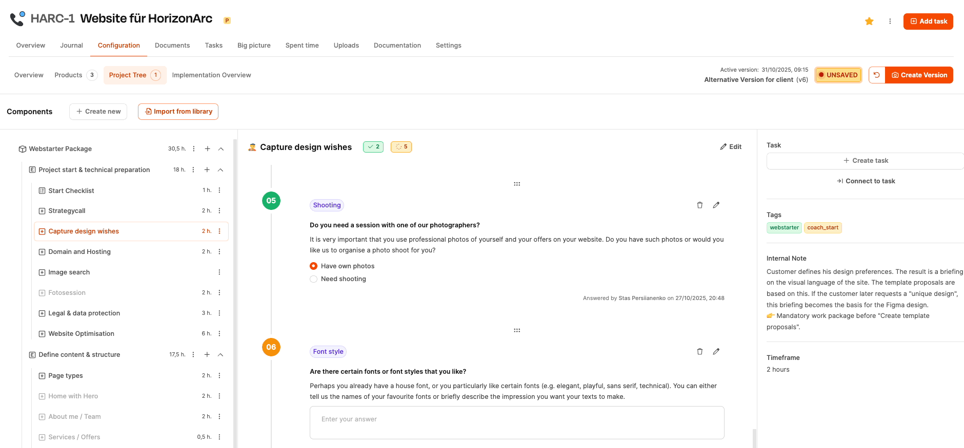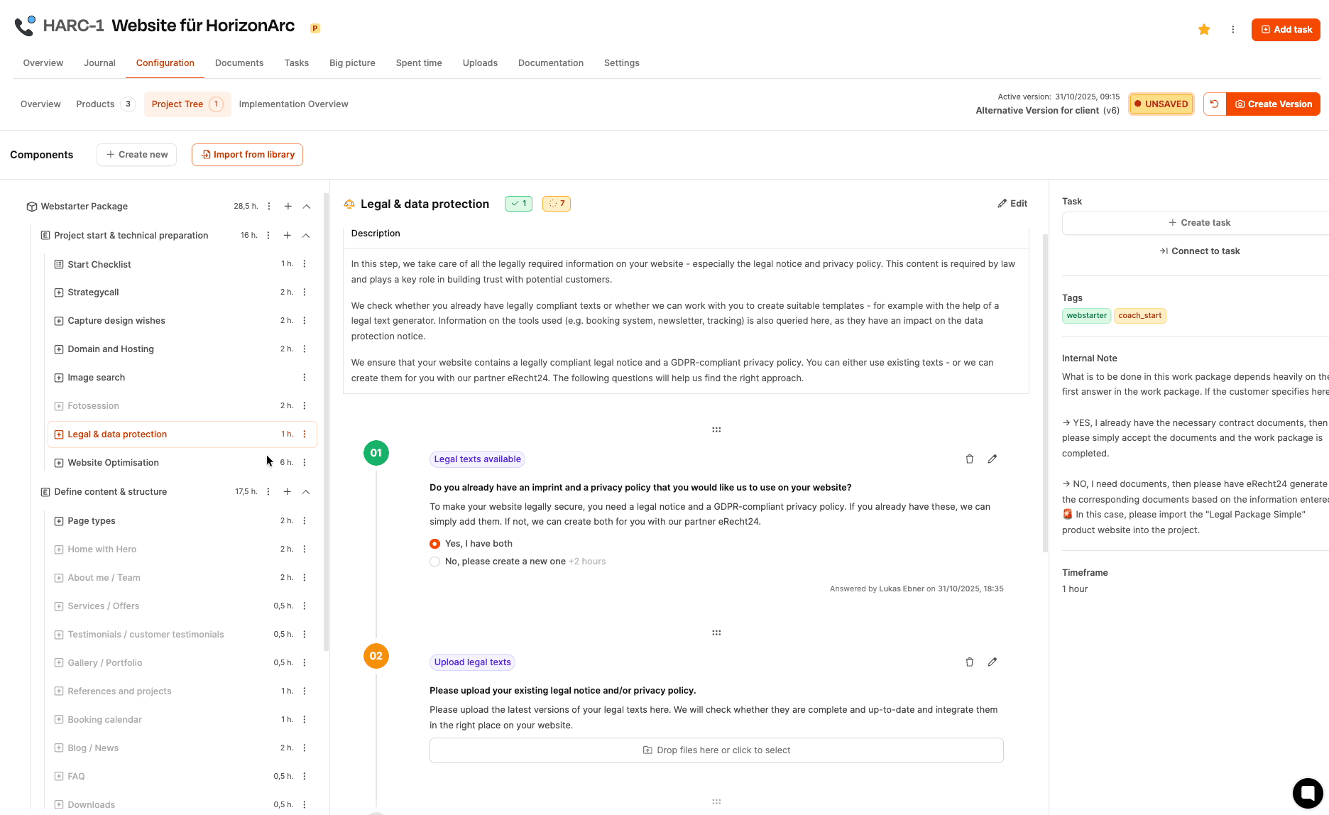 Answers in the project tree can automatically trigger extra work packages. Example: