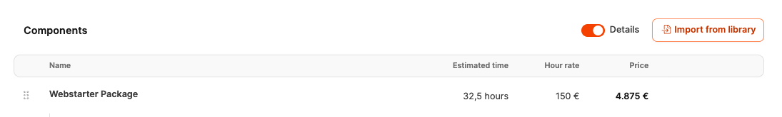 Once all efforts are set, the price is calculated. The calculation is based on the saved hourly rate: