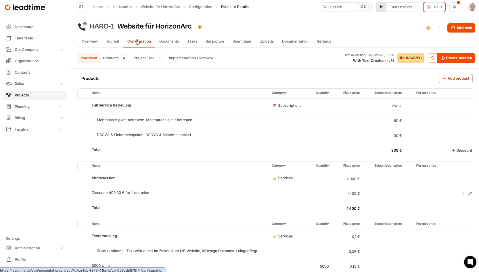 You can find this section in the project under the Documents tab. Here, you create all project-related contracts, which are automatically filled with customer and project data. Conditional logic lets you show sections only when they’re needed. This makes sure your content is consistent and cuts down on manual work.