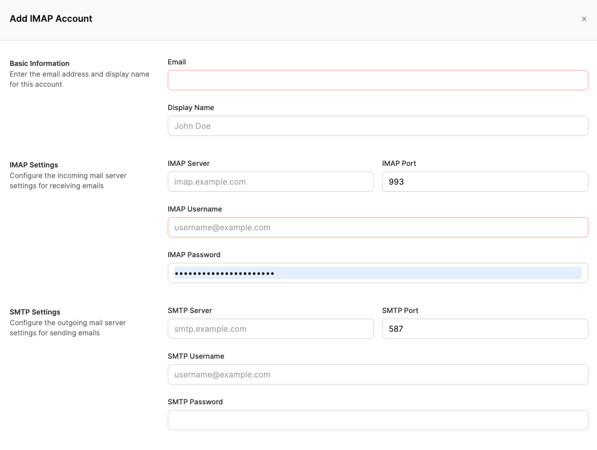 If you're not using a Google or Microsoft 365 account, you can also connect your mailbox via IMAP. This option is great for classic mail servers or self-hosted inboxes.