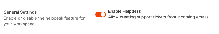 Switch on the Enable Helpdesk option to activate the helpdesk for your workspace.
