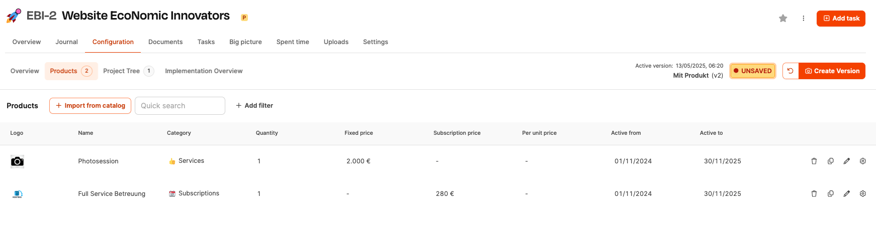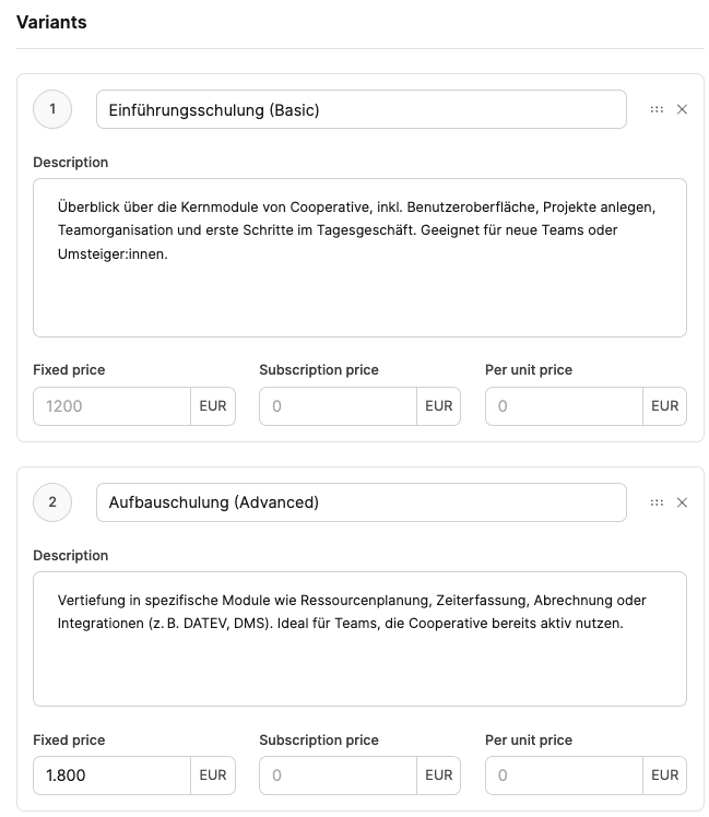 This way, the product catalog in Leadtime forms the foundation for scalable and repeatable business models – especially for companies that, along with custom project work, also offer standardized services or subscriptions.