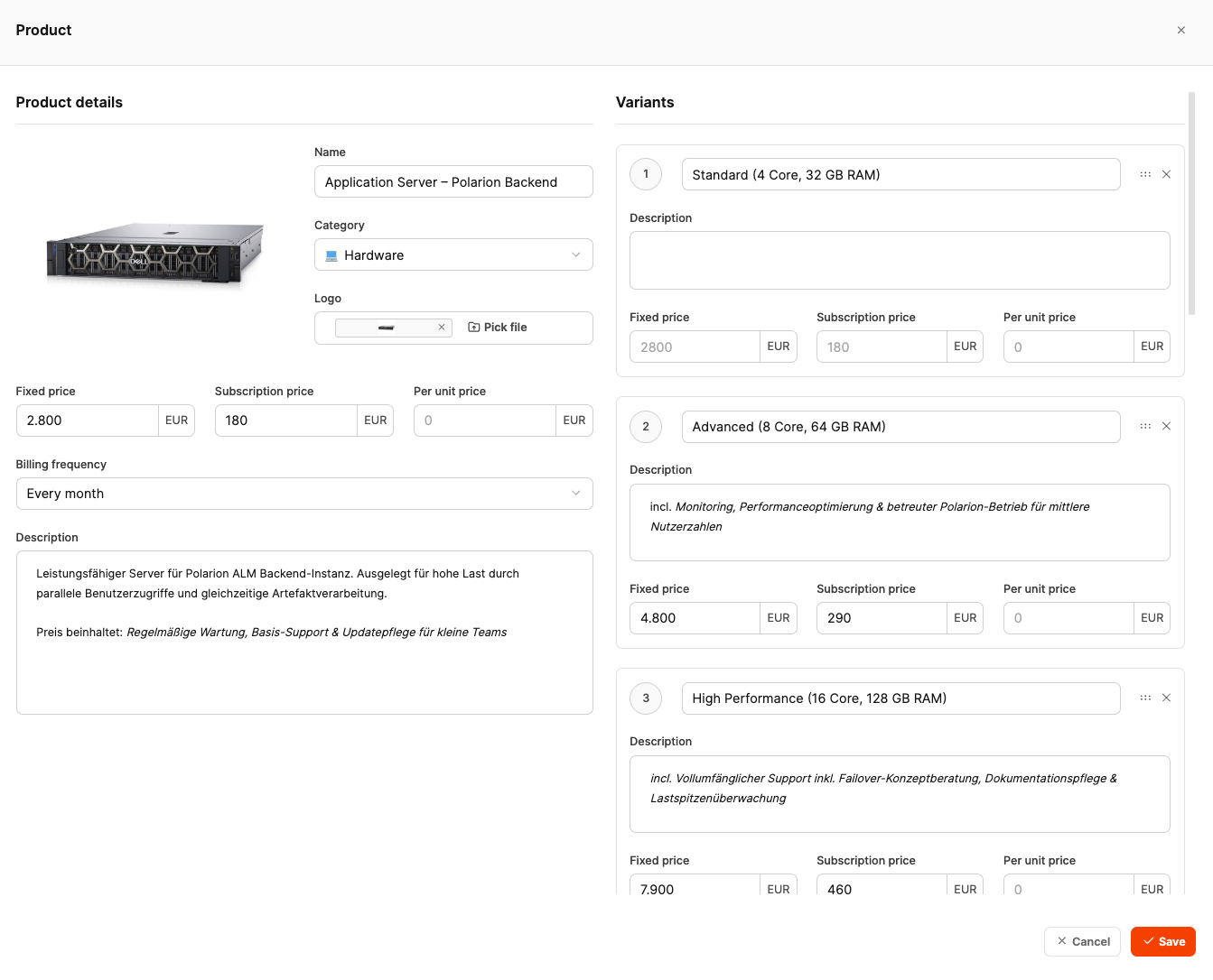 Category – Assign it to the right product group (e.g. hardware, services, software)