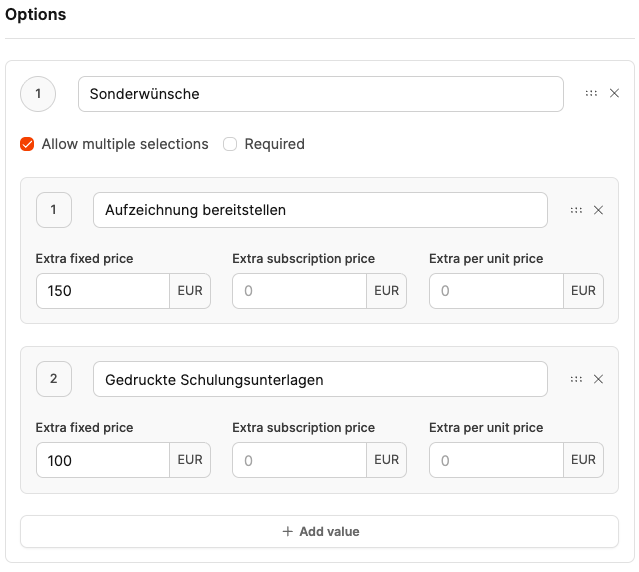 Options are especially great for upgrades or extra modules, without having to create separate products.