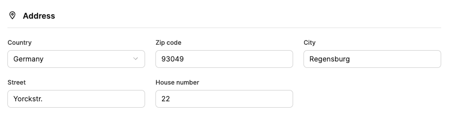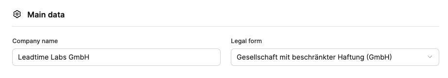 Legal form – pick the company’s legal structure (e.g. GmbH, AG, sole proprietorship).