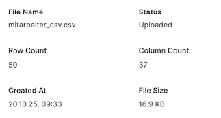 In this view, the field mapping for your import file takes place. Here you define which columns from your CSV file should be linked to which fields in Leadtime. The page has two main areas – the left column with detected data from the file and the right column with the Leadtime fields and mappings.