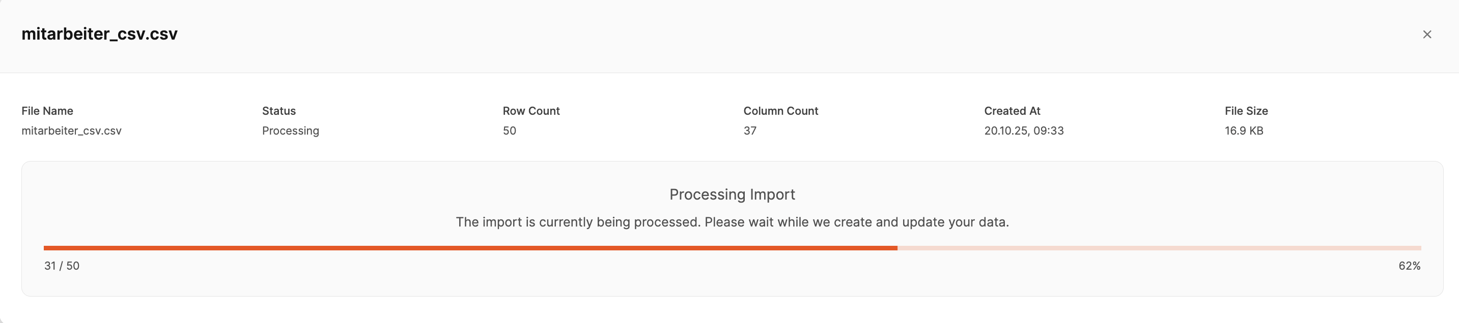 In the Administration → Imports area, you’ll see all previous uploads with their status: