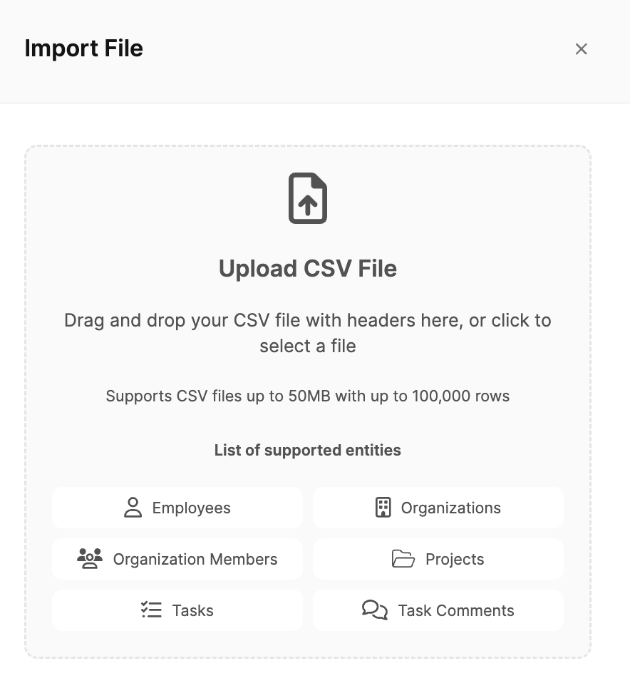 That way, you can import employee lists, customer data, or project details from existing systems without having to create every entry manually.