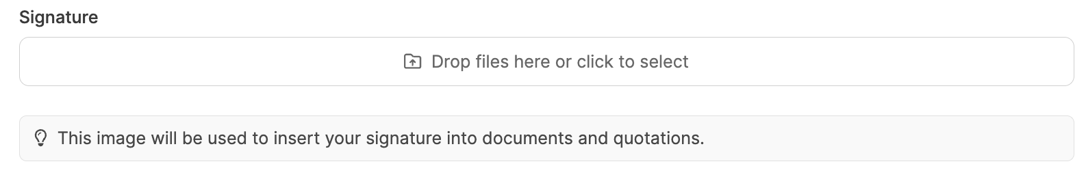 Signature: Option to upload a picture of your signature. It'll be automatically placed in documents like quotes, invoices, or letters.