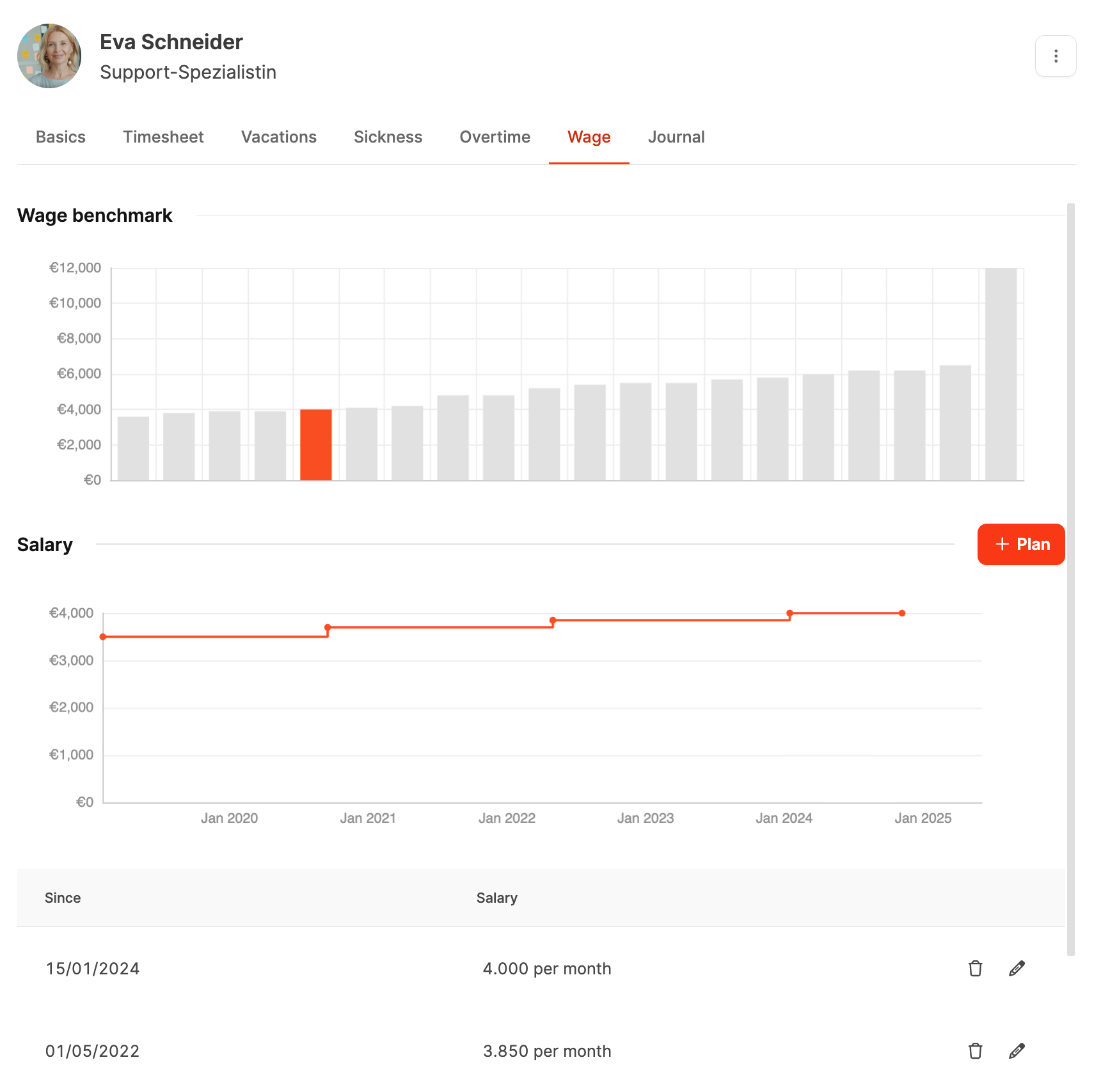 The Payroll Management feature makes an employee’s salary development easy to track compared to the rest of the team. It logs all historic changes, planned adjustments, and bonus payments, making sure your comp structure stays clear and transparent.