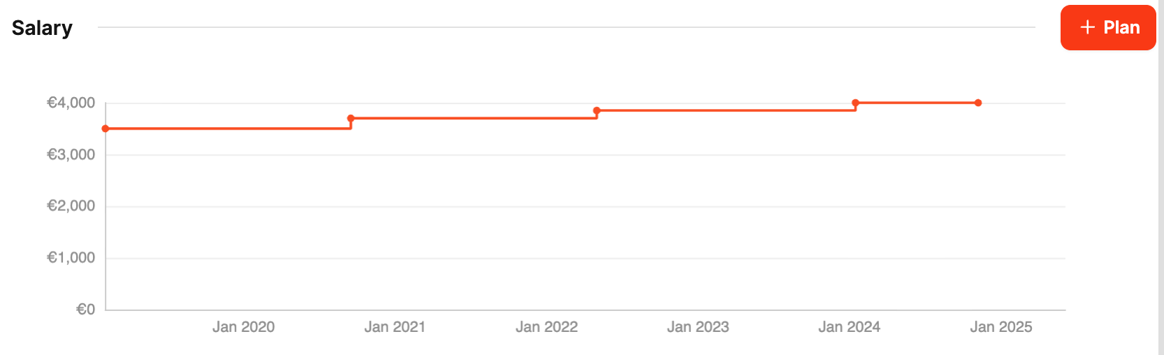 Planning: With the “Plan” button, you can set up a future adjustment with start date and new amount.