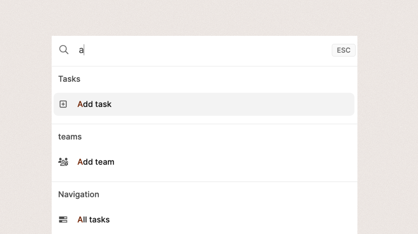 The Command Console gives you quick access to content and features in Leadtime. It searches tasks, organizations, projects, team members, and navigation items.