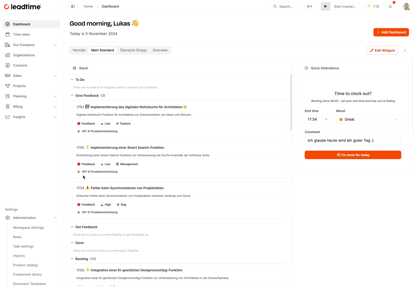 This method is super handy if team members want to plan their vacation directly in connection with work hours or overtime.