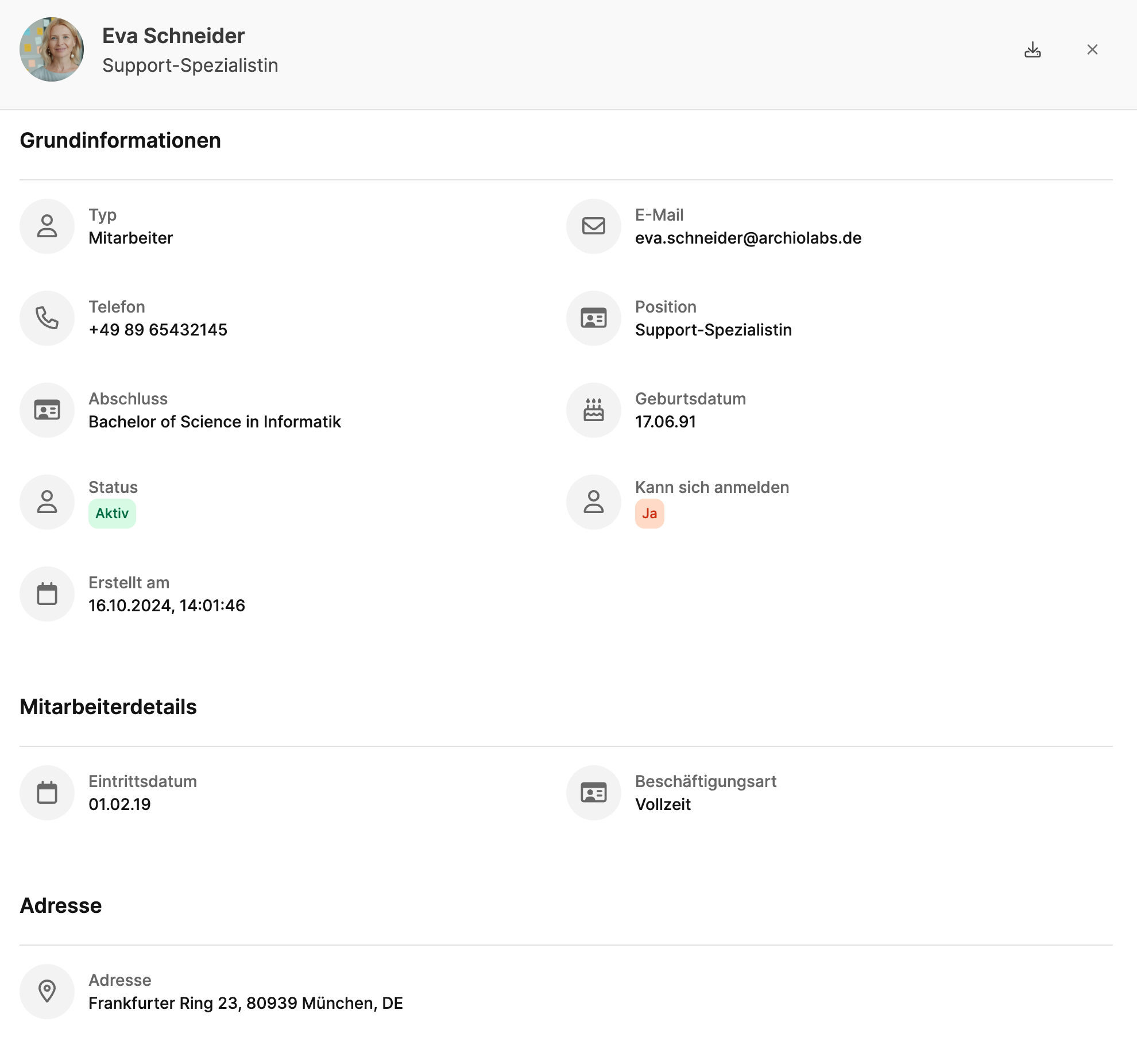 There you'll see more info, like organization, position, personal data, or team assignments.