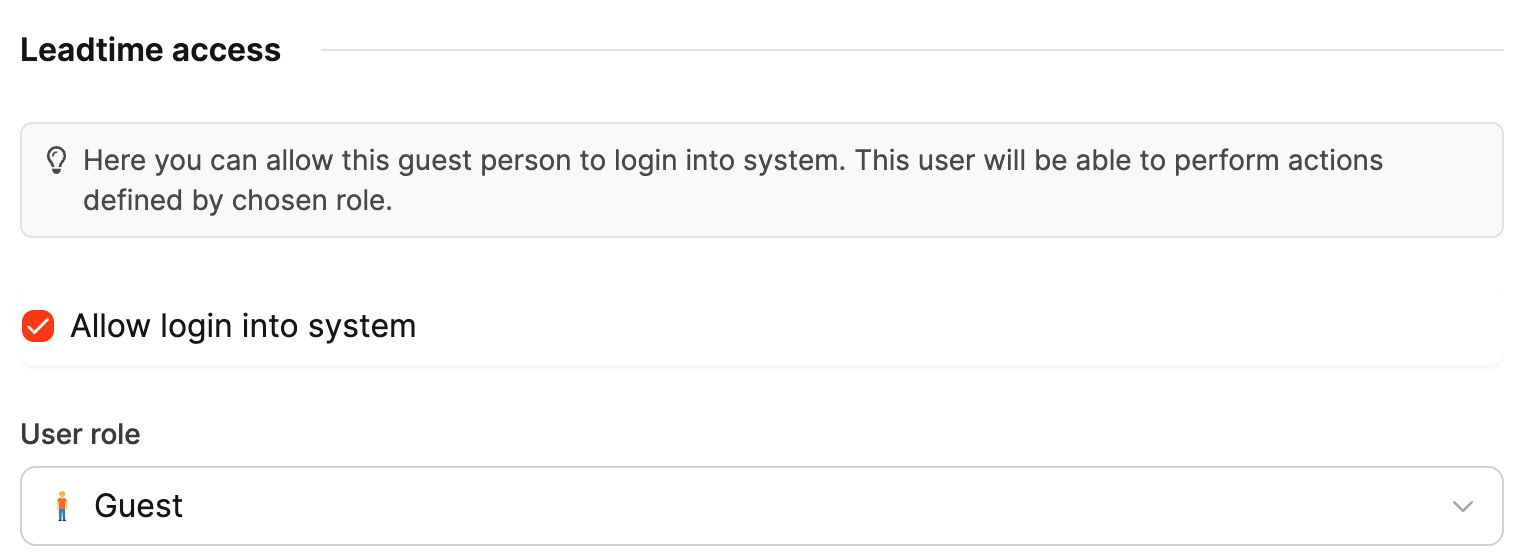 Guest users let external people – like customers or partners – securely access their own projects in Leadtime. With clearly limited permissions, internal data stays protected, while working with external collaborators remains efficient and transparent.