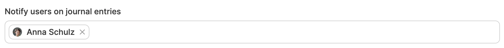 In the Notify users about journal entries field, you can choose which internal users get notified when new entries (like feedback, meeting notes or contact histories) are added to the organization’s journal.