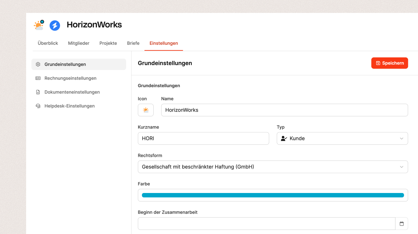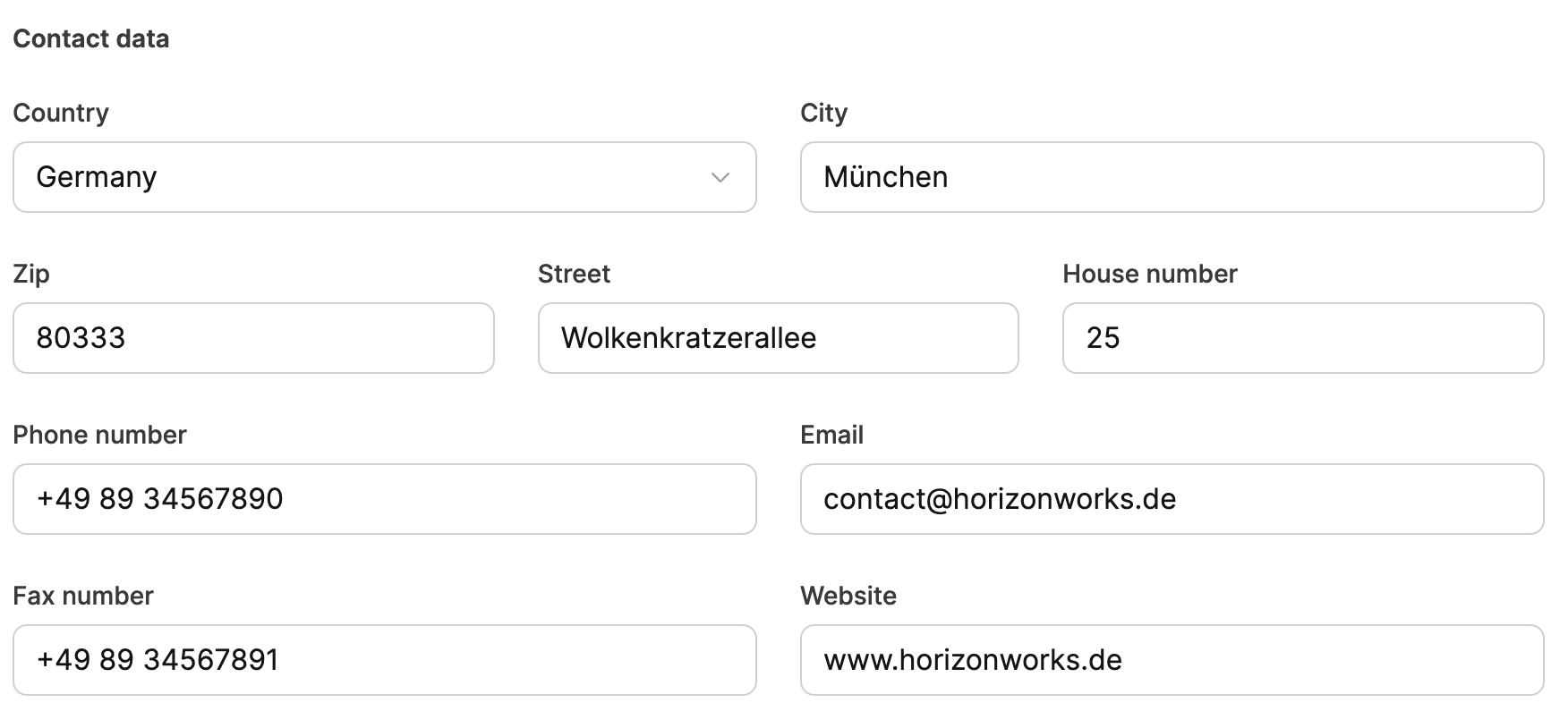 In the organization settings, you can manage all the key details for an organization – from basic info and contact details all the way to legal info. This is where you set organization-specific settings that only apply to this organization and might be different from the general workspace settings.