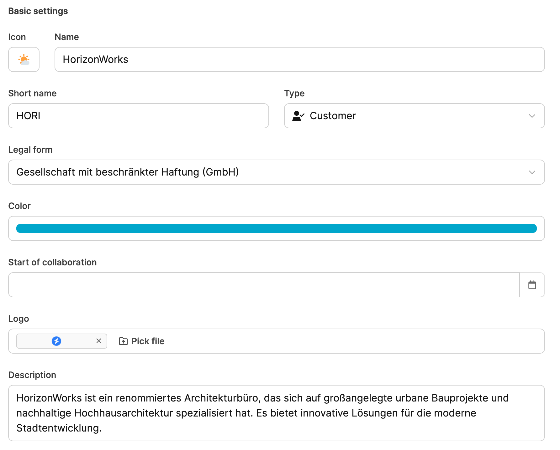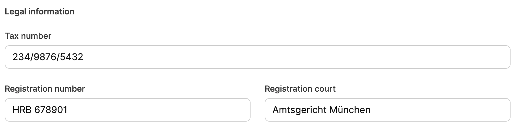 Legal form: Choose the organization's legal structure (e.g. GmbH, AG).