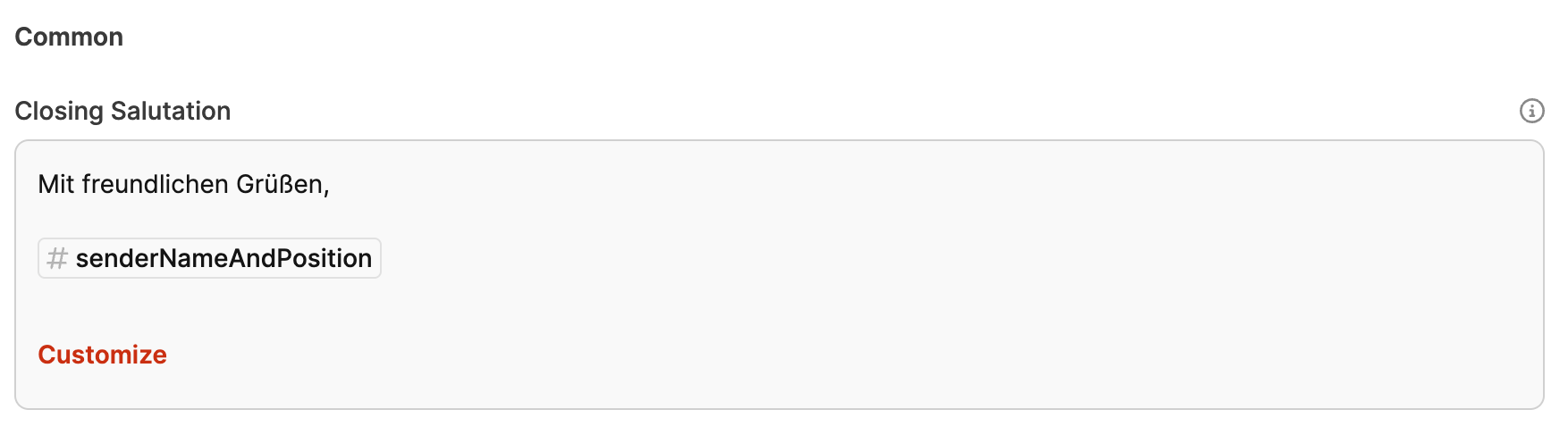 Invoice greeting: This is the template for the greeting on your invoices. It gets added automatically. You can edit it to address your customers personally.