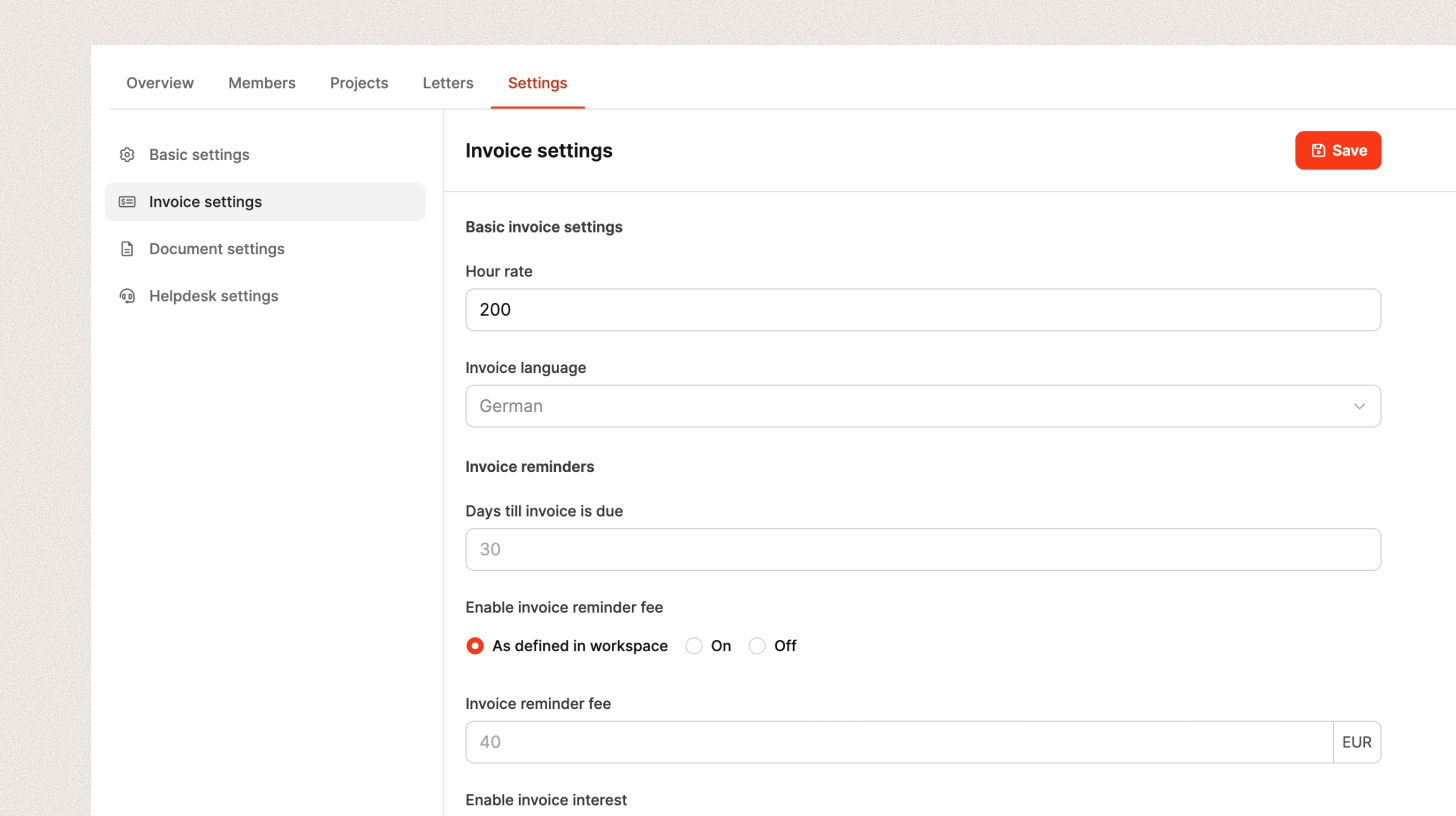 In the organization settings, you can make it so that specific customers have different billing or reminder rules than the standard for the workspace. This is especially helpful if you work with different types of customers, contract types, or payment terms.