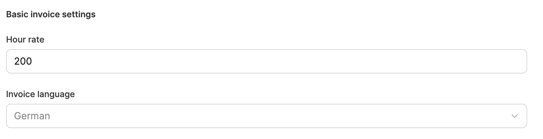 Invoice language: Language used to generate invoices (like German or English).