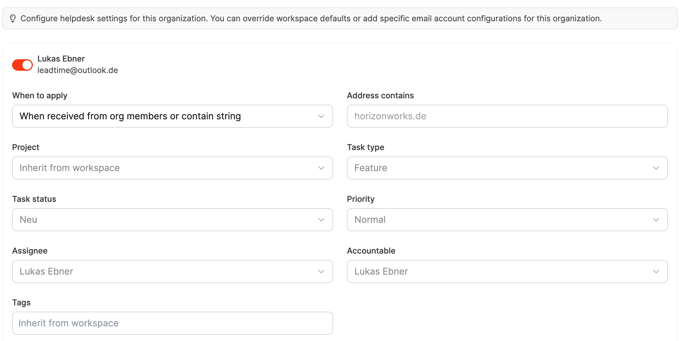 → This option is handy if the organization uses a dedicated support address (e.g. support@kunde.de) and wants all emails to be automatically assigned to this customer.