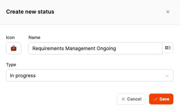 Every new status is based on one of the standard types (e.g. In Progress or Closed), but can have its own name and icon.