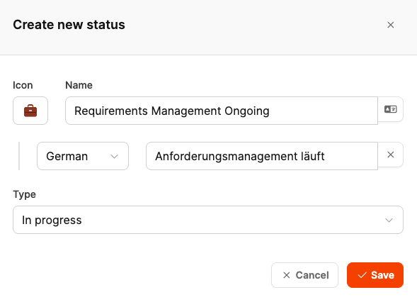 Here you can modify existing statuses or add new ones based on standard types to make workflows fit your internal processes or task types more closely.