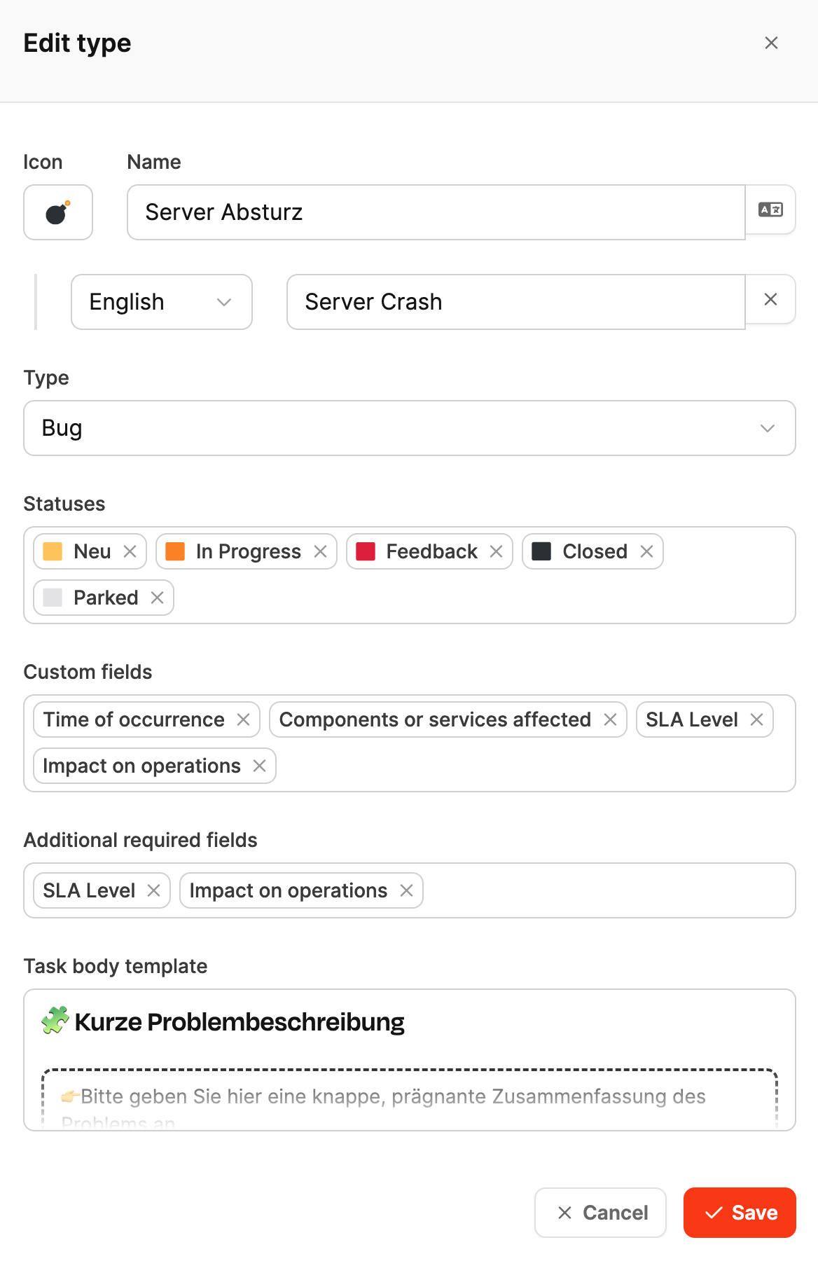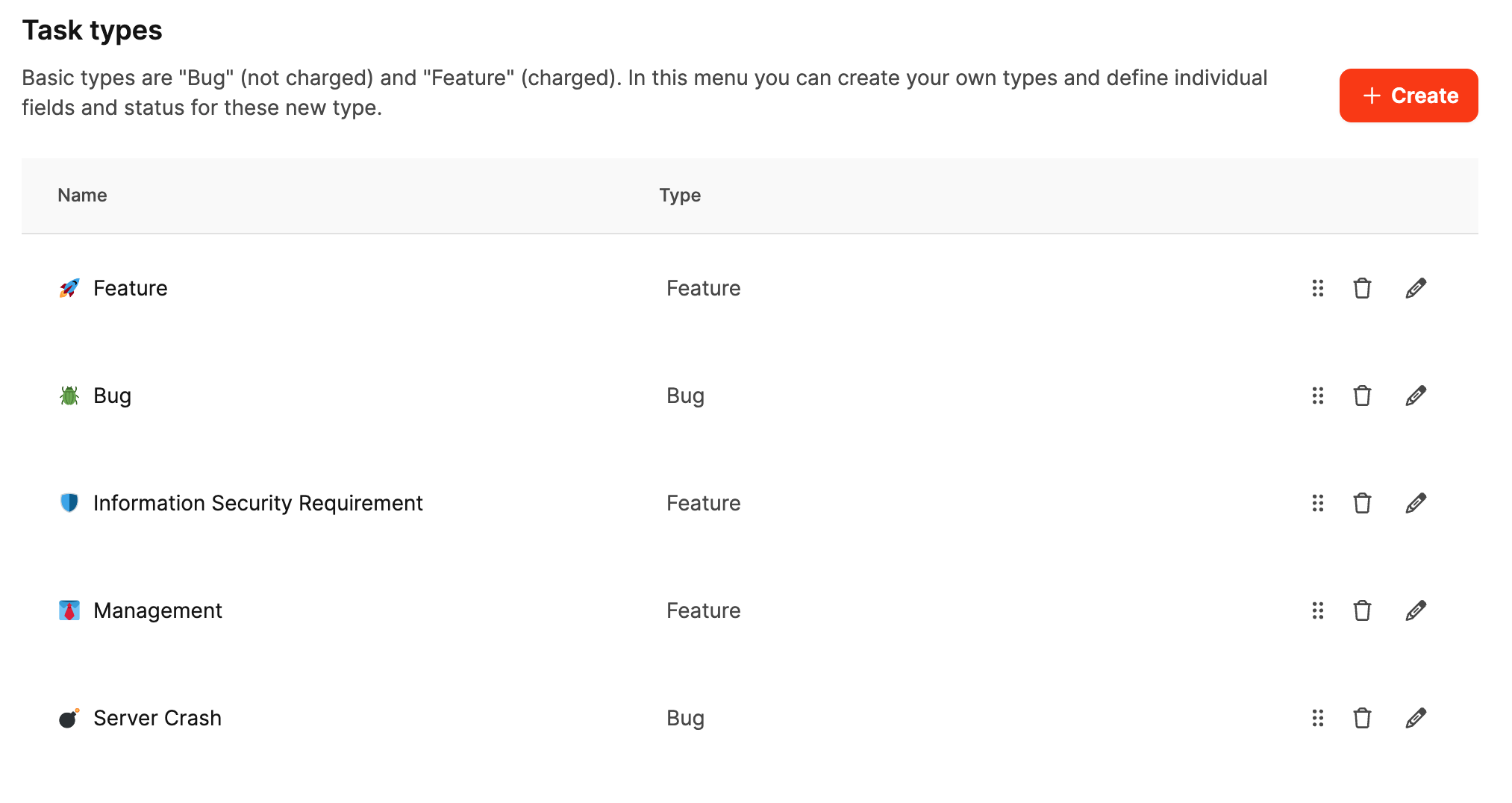 In a ticketing system, task types help you clearly separate different kinds of work.