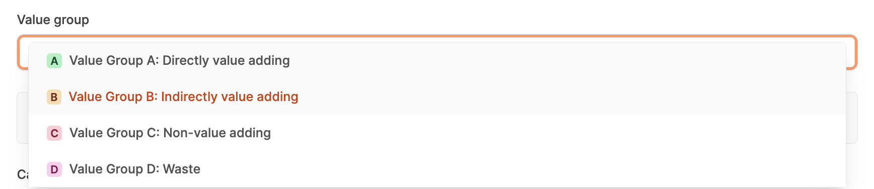 To do that, all work in the company is sorted into four categories (“value groups”):