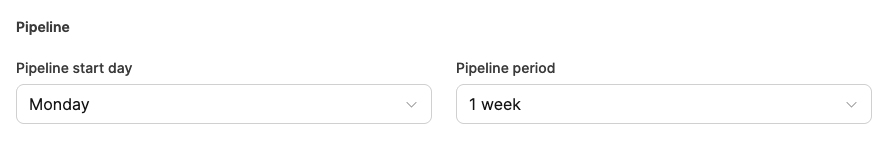 Start day: Defines on which day of the week the pipeline starts (e.g. Monday or Tuesday).