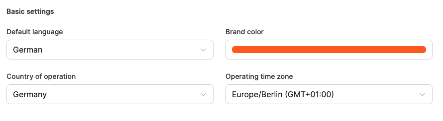Default language: German or English. This setting applies for new users. Each user can adjust their own language in the profile.